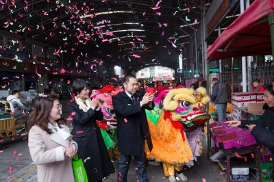隨后,市場開展了舞獅表演。陣陣鑼鼓禮花聲中,桂林萬禾農產品有限公司黨總支書記、總經理崔萌佳,桂林萬禾農產品有限公司董事長、桂林萬禾市場管理有限責任公司執行董事李小濱到市場倉位向所有經營戶派發紅包,感謝經營戶十年來與五里店市場風雨兼程、與萬禾公司在農產品流通行業攜手前行,向大家分享節日的喜悅,為大家送去衷心的祝福。