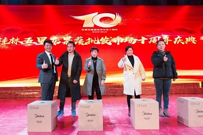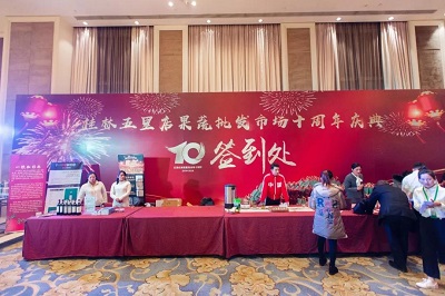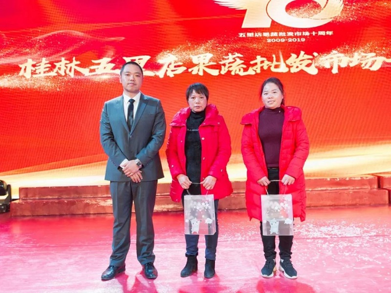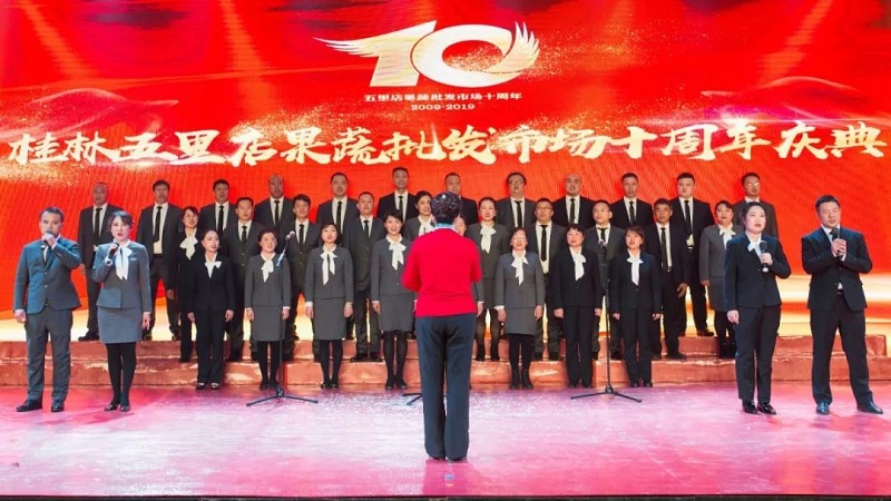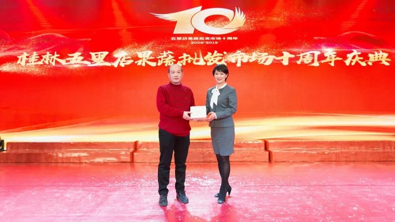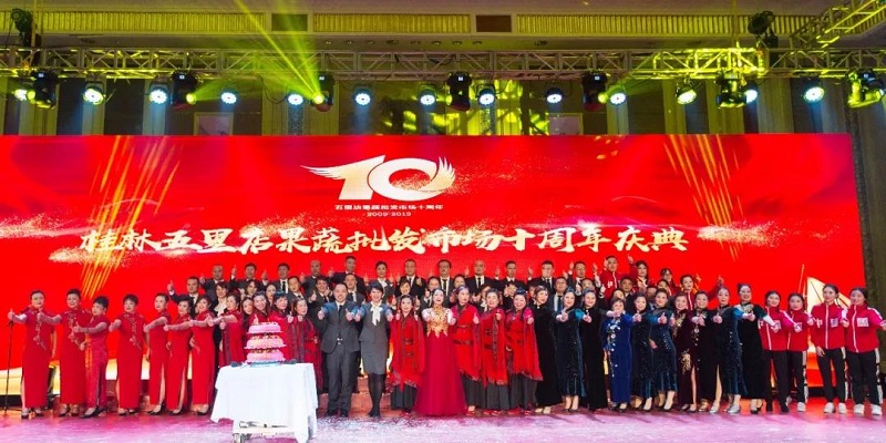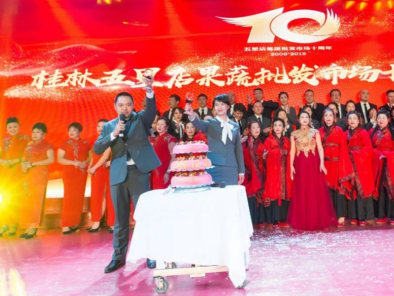 2019年12月22日,桂林五里店果蔬批發市場十周年慶典活動在市場和桂林香格里拉大酒店隆重舉行。社會各界受邀嘉賓、市場商戶和萬禾公司領導及員工參與活動,用多種方式共同歡慶五里店果蔬批發市場開業十周年。