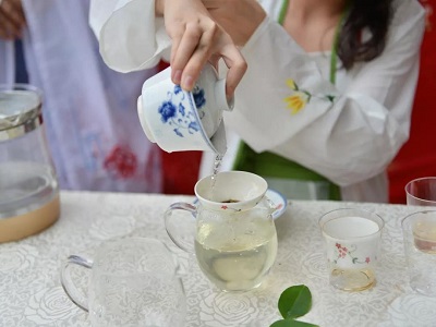 采用傳統工藝制作的正宗桂花茶,“茶為骨,花為香”,茶葉和鮮桂花巧妙融合在一起,茶葉香味融合了桂花的香氣,無論是頭道水還是二、三道泡飲,桂花的香味都久久不散,聞之醒神,飲之健胃。桂花漂浮在茶湯之中,有杯中窺茶、一葉知秋的美好,體驗品茶人獨有的浪漫。