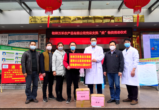 當前新型冠狀病毒感染的肺炎防控進入關鍵時期,醫用口罩等物質緊缺。得知這一消息,桂林萬禾農產品有限公司黨總支積極行動,多方渠道購買醫用N95口罩,踴躍捐贈醫療物品,共同抗擊疫情。