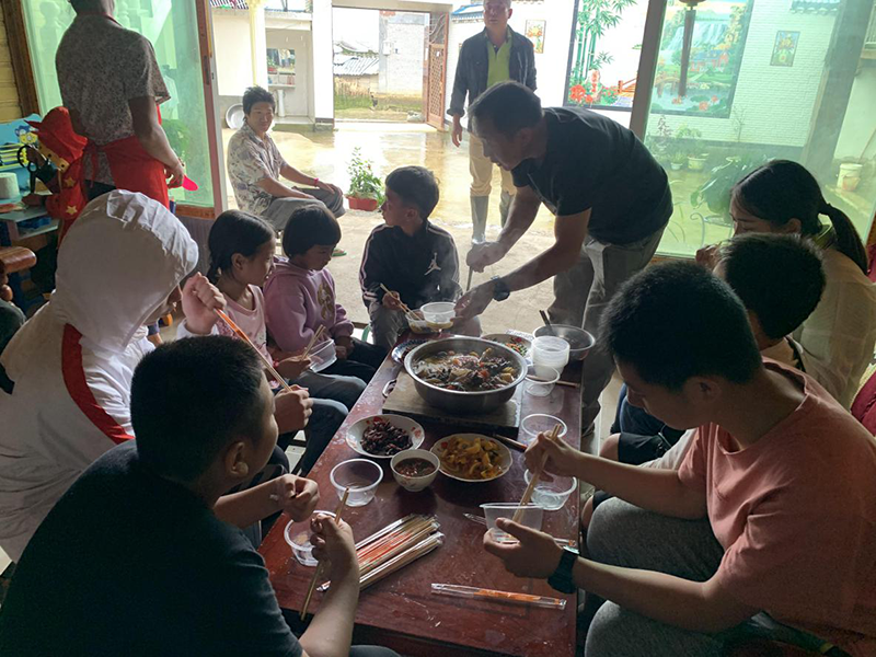 在戶撒學員們深入貧困村與當地小朋友互結對子,給小朋友們帶了自己準備好的小禮物,相互約定好好學習;家長們也熱情的邀請學員們留下來吃午飯,品嘗到了最正宗的戶撒美食。