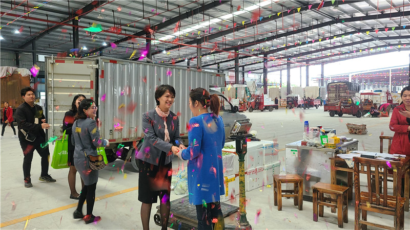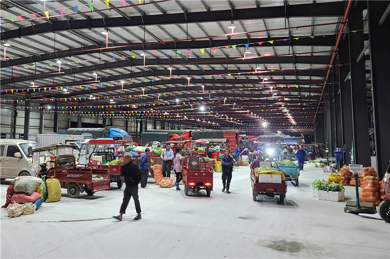 開業首日凌晨4時,萬禾公司工作人員早已等候在寧鐵桂林東萬禾冷鏈物流園東門歡迎采購商的到來,親手為他們派發現金紅包,誠摯歡迎他們前來體驗一站式蔬菜采購服務。