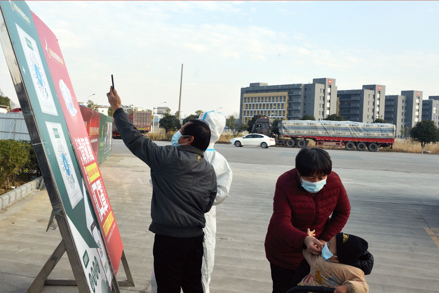 ▲進出市場人員要求戴口罩并出示健康碼