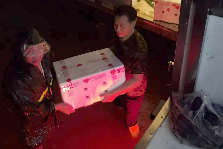 萬禾旗下配送中心直接擔負著本市近10萬人的果蔬供應。在車間進水,自身遭受災害情況下,緊急啟動備用場地,在市場開辟專屬配送區域進行農產品分揀、配送,實現專人專車采購,充分調動14輛自有配送車及公司行政用車,組織配送駕駛員23人,克服市區道路積水嚴重困難,優化配送方案,確保糧、油、肉、菜等生活必需品正常供應到位。