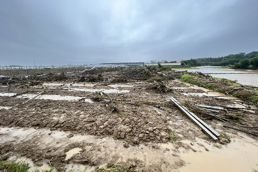 萬禾集團旗下種植版塊在五通鎮(zhèn)的生產(chǎn)基地此次也受災(zāi)嚴重,170畝農(nóng)田被洪水倒灌,育苗大棚倒塌,農(nóng)作物被淹,幾近絕收。萬禾黨總支組織協(xié)調(diào)基地人員第一時間到抗洪搶險一線,現(xiàn)正緊張有序展開災(zāi)后生產(chǎn),補種搶種。