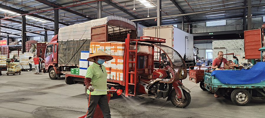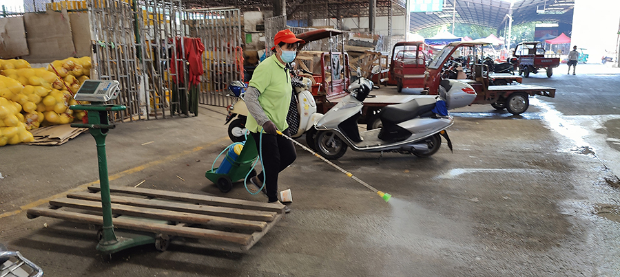 對各主要經營場所進出人員嚴格執行測體溫、核驗健康碼、佩戴口罩,并設置口罩售賣點;進入市場的貨運車輛,應提前向市場報備,憑司乘人員48小時核酸檢測證明、行程碼、入場碼,測量體溫正常經過消毒后進入市場。進入市場后將車輛停放在指定卸貨區域,司乘人員不得下車,不得參加卸貨、銷售,全程不得與其他人員接觸,全程封閉式卸貨,筑牢抗擊疫情第一防線;各經營場所內部加強管控,安排人員不間斷對市場進行巡查,實施24小時值守制度;建立監管機制,加強在崗人員教育培訓,嚴格遵循國內疫區人員核驗處理辦法;定時對人多貨雜的交易區域和病毒隱匿高風險區域實施衛生清潔、病毒消殺,全力保障經營戶、群眾的身體健康。