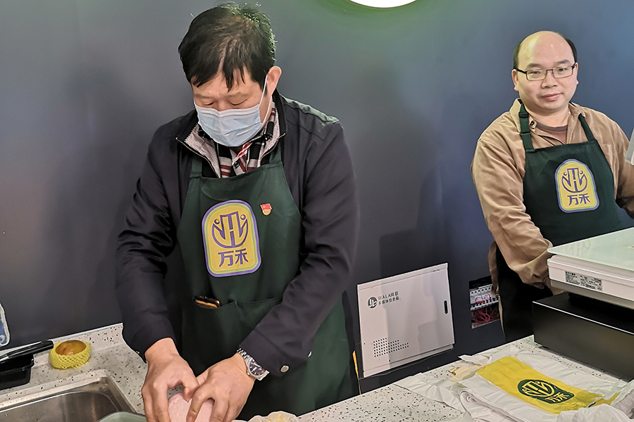 通過黨員現場服務顧客、切瓜果擺盤等手把手示范工作,提升員工服務認同感與主動性,以黨建引領,規范服務,進一步提升員工現場服務水平,讓顧客感受到更有溫度、更有鮮度的服務。