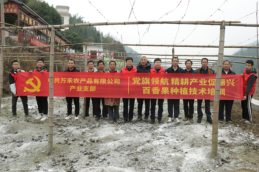 產業部支部通過黨組織共建模式、結對幫扶猴背村百香果產業,實現一村一品優勢品牌建設。