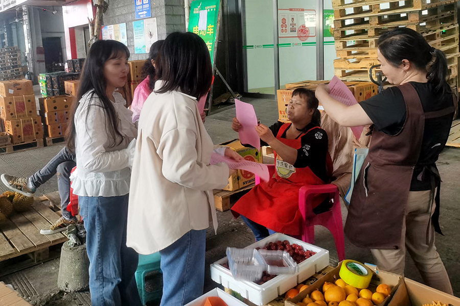 通過向市場經營戶宣導文明出行、美化環境、凈化空氣的重要性,引導廣大市民養成愛護公共環境衛生、愛護花草樹木、不亂扔果皮紙屑、不搶闖紅燈、不隨地吐痰等良好習慣,積極爭做城市“文明出行”的踐行者、宣傳者和推動者。