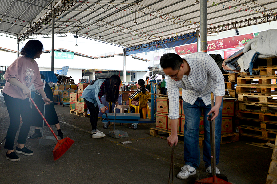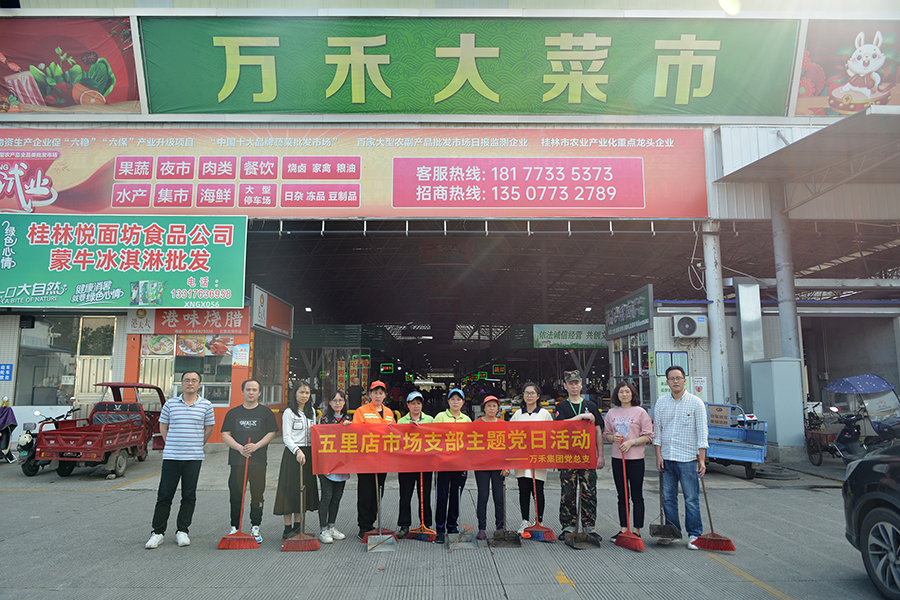 為給市場經營戶營造干凈、整潔的經營環境,讓廣大市民過上歡樂、祥和的廣西特色民族節日,在三月三即將到來之際,萬禾集團五里店市場支部組織黨員在五里店果蔬批發市場開展“美化環境,喜迎三月三”主題黨日活動,進一步弘揚新時代文明新風和環保意識。