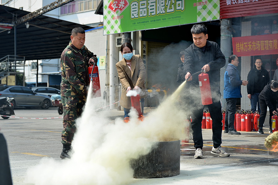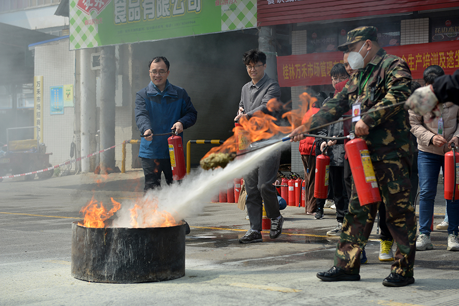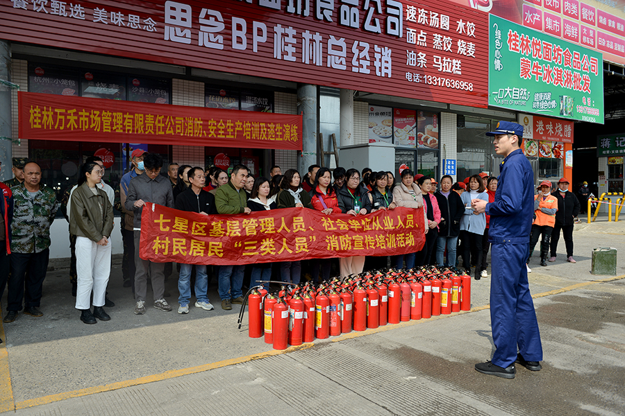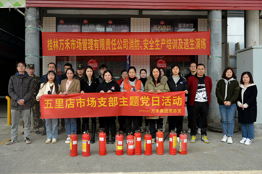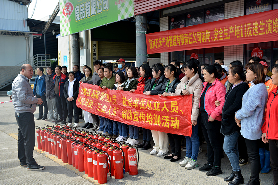 為增強(qiáng)黨員干部及市場經(jīng)營戶消防安全意識,有效掌握防火、滅火應(yīng)急處置能力,4月25日,萬禾集團(tuán)五里店市場支部組織黨員干部及市場經(jīng)營戶在五里店果蔬批發(fā)市場開展“增強(qiáng)消防意識,筑牢安全防線”主題黨日活動,桂林市七星消防隊(duì)?wèi)?yīng)邀到場進(jìn)行消防安全培訓(xùn)。