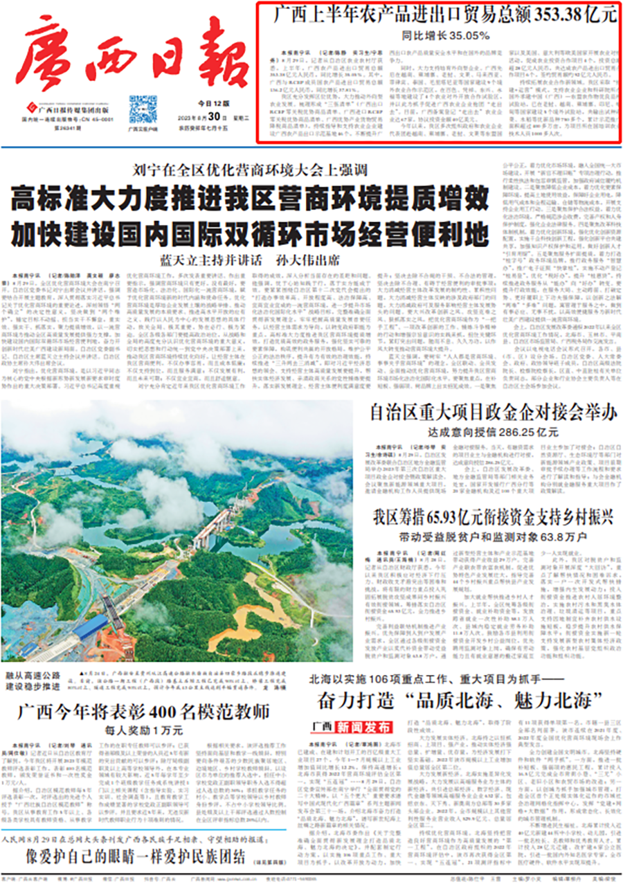 8月29日,記者從自治區農業農村廳獲悉,上半年,廣西農產品進出口貿易總額353.38億元人民幣,同比增長35.05%。其中,廣西與RCEP成員國農產品進出口貿易總額136.2億元人民幣,同比增長37.81%。