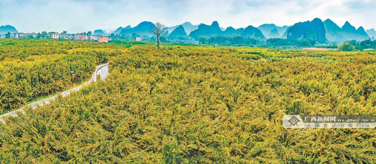 ▲廣西水果產(chǎn)量已連續(xù)5年排名全國第一,是中國亞熱帶水果的“果園子”,也是砂糖橘的重要產(chǎn)區(qū)之一。圖為靈川縣九屋鎮(zhèn)的一處砂糖橘種植基地,成熟的砂糖橘掛滿枝頭,豐收在望。王素華 攝