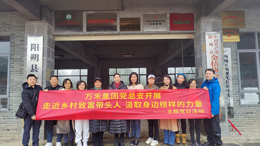 為深入學習貫徹黨的二十大精神和習近平新時代中國特色社會主義思想,營造學習榜樣、弘揚正氣、傳遞先進力量的濃厚氛圍,充分發揮先進典型示范引領作用,1月6日,萬禾集團黨總支組織黨員干部赴位于陽朔縣白沙鎮蕉芭林村的桂林市黨員教育培訓示范基地開展“走近鄉村致富帶頭人,汲取身邊榜樣的力量”主題黨日活動,萬禾集團副總經理周雯、黨總支副書記夏四初參加活動。
