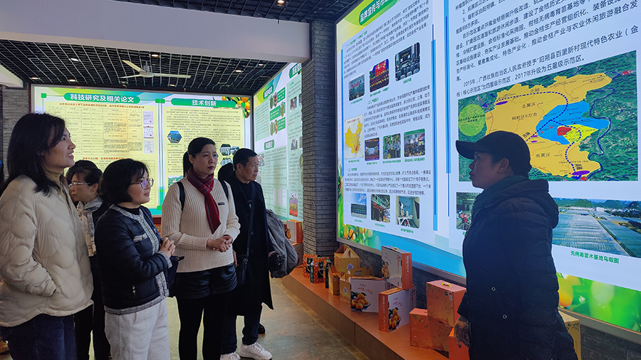 萬禾集團黨員干部一行在致富帶頭人、全國農業勞動模范、蕉芭林村黨總支書記、黨的十九大代表賴玉梅帶領下,先后參觀了陽朔縣農業產業扶貧培訓基地和白沙鎮黨代表工作室,賴玉梅詳細講解了培訓基地的基本情況、金桔標準化種植和深厚的歷史文化底蘊以及自己在創業過程中的心路歷程,讓黨員干部們深切感受到賴玉梅身為一名山村共產黨員堅持以身作則,將自己的致富經驗毫無保留地傳授給村民,帶領村民走向特色金桔產業的致富之路。