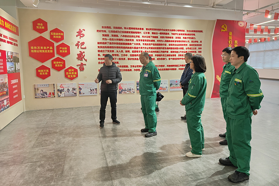 劉小榮書記一行首先來到萬禾集團黨建活動基地參觀學習,詳細了解萬禾集團的基本情況及通過黨建引領萬禾集團高質量發展的歷程。在交流學習中,大家暢所欲言,就如何推動企業黨組織建設和發揮黨員先鋒模范作用交流經驗做法,共為企業黨建發展出謀劃策。隨后,劉小榮書記一行來到會議室詳細查看了萬禾集團黨總支黨建臺賬和三會一課會議記錄,與大家深入探討如何更好地發揮黨組織的戰斗堡壘作用,進一步提升企業黨員隊伍的素質和能力。