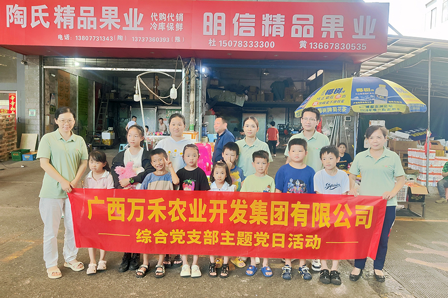主題黨日活動中,綜合支部組織黨員與孩子們走進萬禾集團百香果苗培育中心,學習百香果苗種植培育知識,從土壤選擇到種苗養護,從生長環境要求到開花結果,孩子們全面深入地了解百香果生長的習性。隨后,大家來到五里店果蔬批發市場,綜合支部書記通過給孩子們介紹擺放在攤位上各式水果及其蘊含的營養價值,為孩子們傳授水果常識,全方位培養孩子們的綜合素質能力。